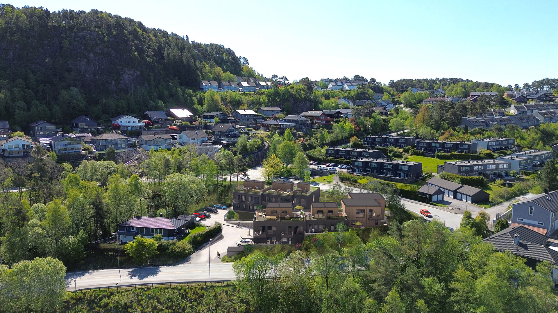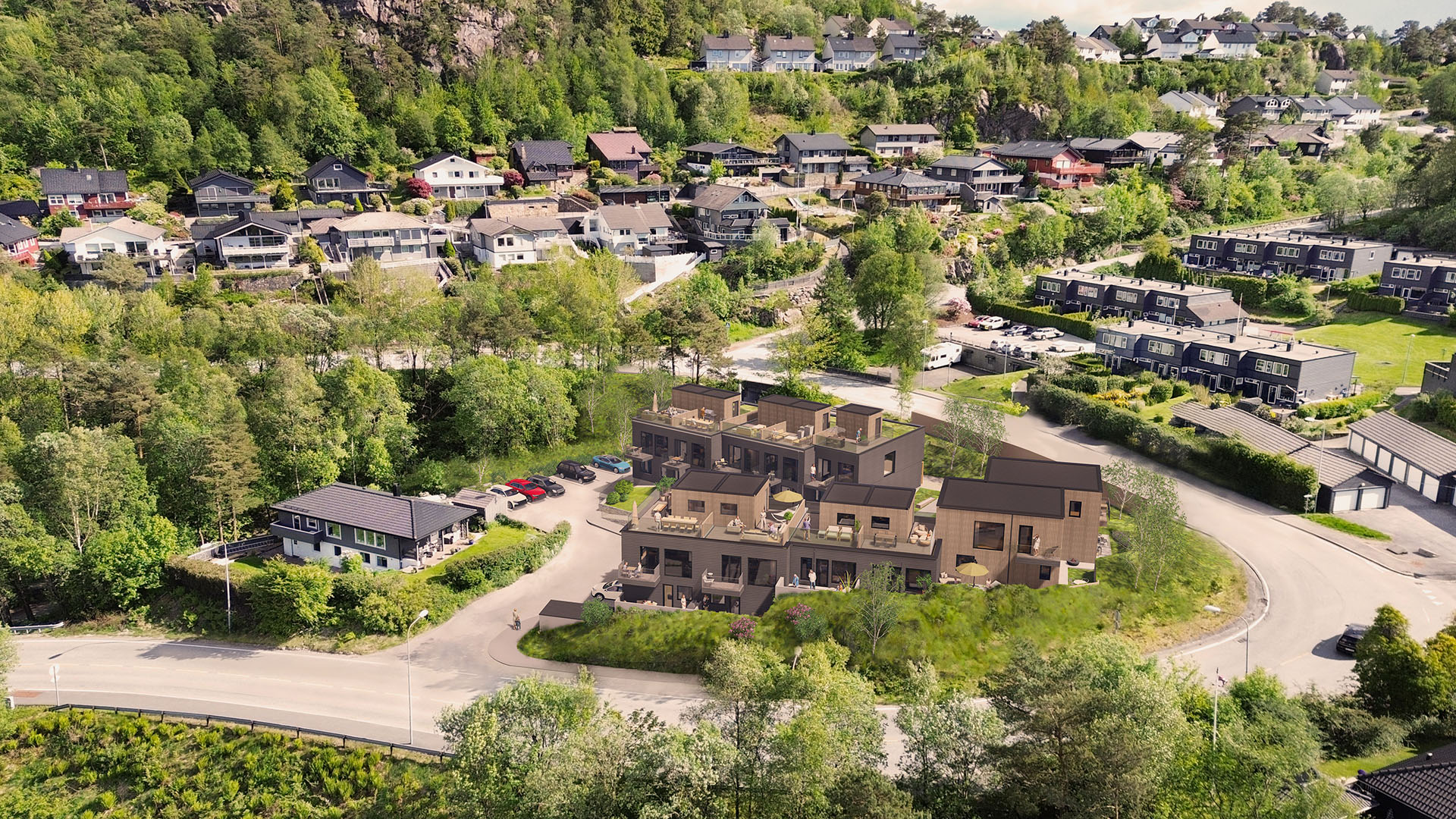 I C.J. Hambros vei får du moderne rekkehus i grønne og barnevennlige omgivelser – med nøye utvalgte materialer, gjennomtenkte planløsninger og solrike uteplasser.