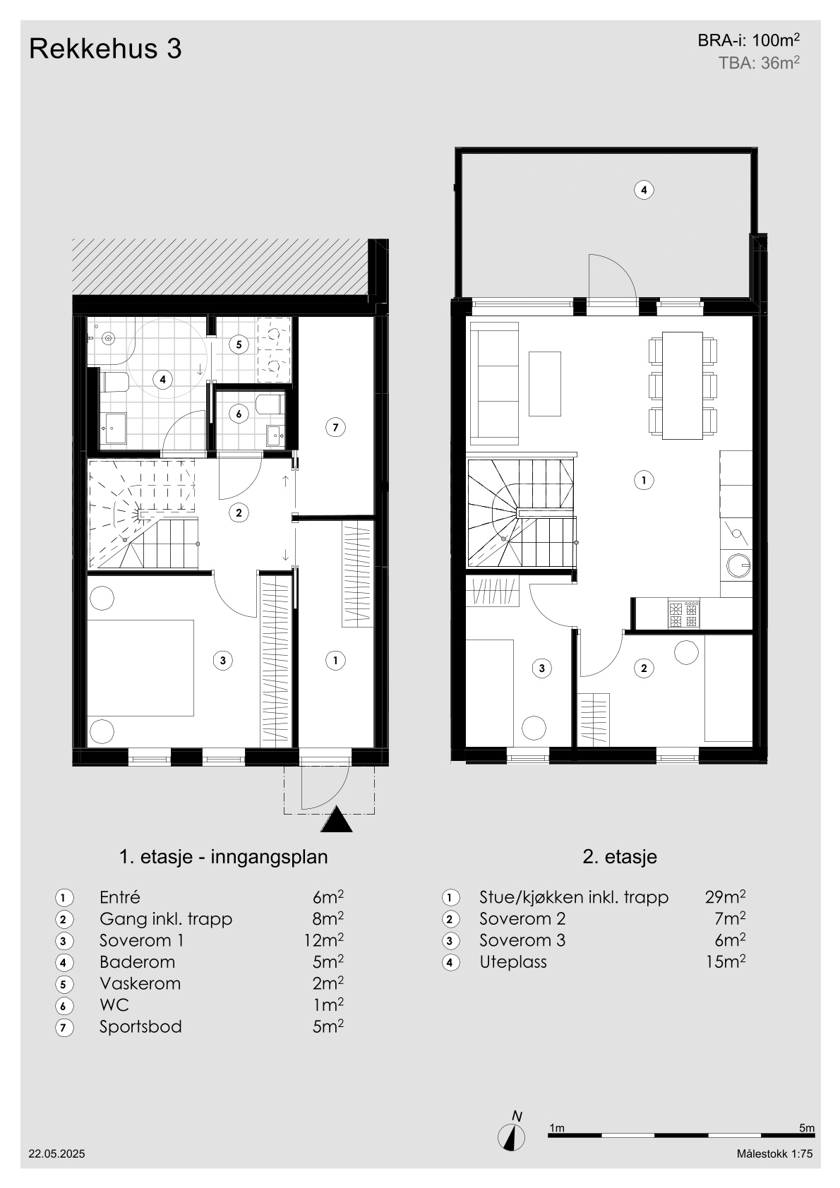Parkering: 1 fast plass i garasje medfølger hver bolig. Opplegg for EL-lading.